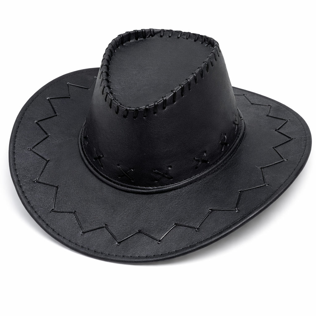 Classic black cowboy hat with stitched detailing and a bold western look. A versatile accessory suitable for parties, themed events, and everyday styling.