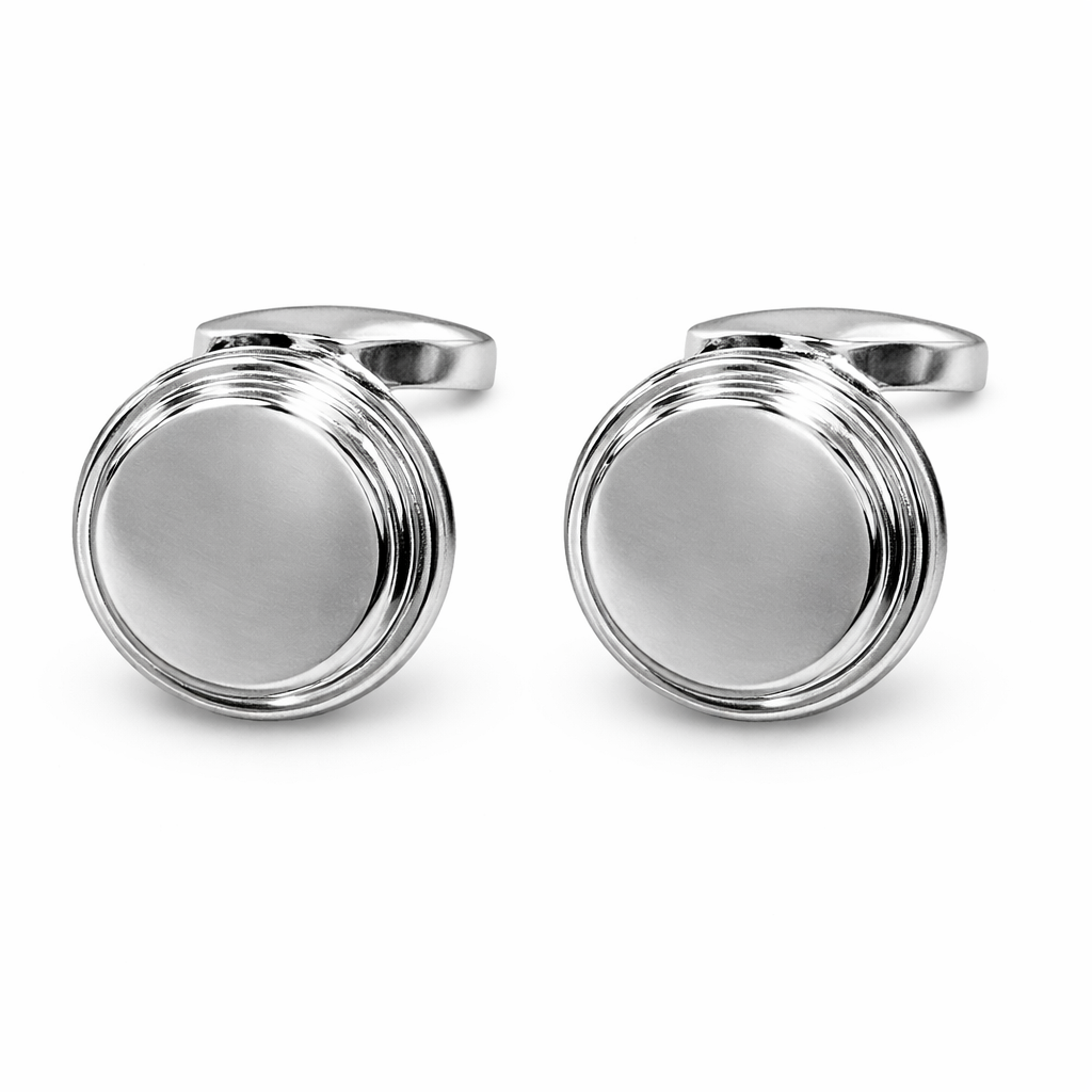 Simple and timeless silver cufflinks with a clean polished surface. Perfect for everyday formal and business wear.