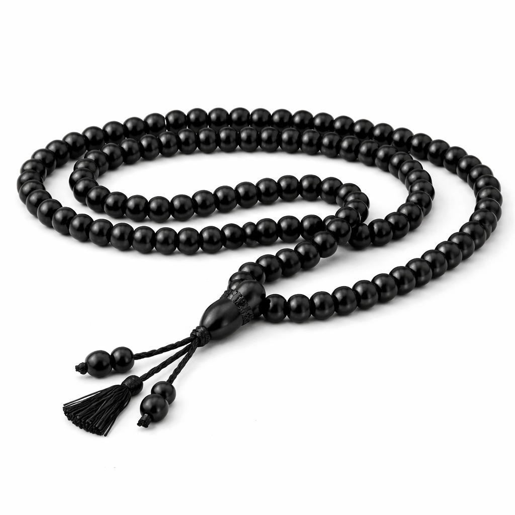 A beautifully crafted black bead prayer tasbeeh designed for smooth and comfortable dhikr. Featuring polished round beads with a sleek glossy finish, this tasbeeh offers a modern yet spiritual look. Strongly threaded with a matching tassel for durability, it is perfect for daily prayer, meditation, and personal spiritual use. A simple and elegant choice for everyday remembrance and gifting.