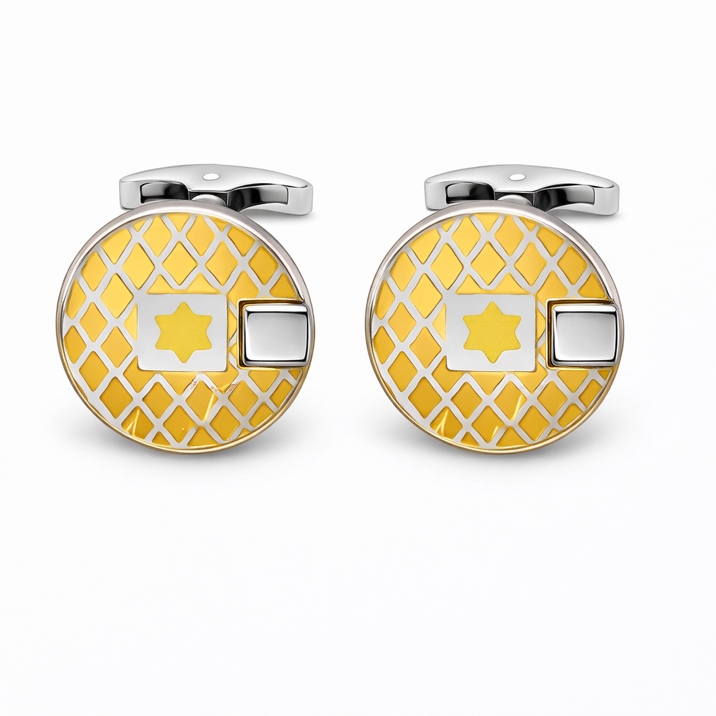 Eye-catching cufflinks with a geometric gold pattern and premium enamel finish. Perfect for adding a modern luxury touch to business and ceremonial attire.