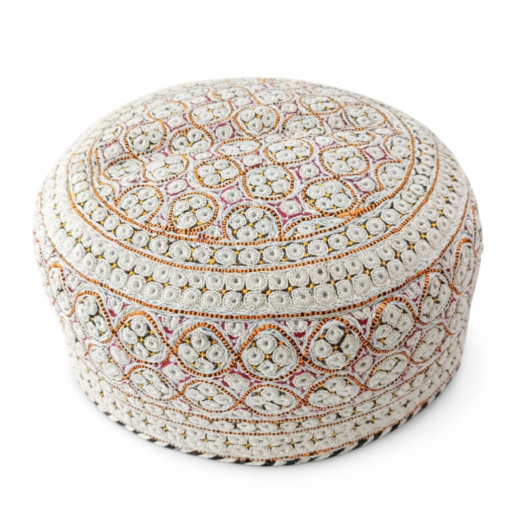 The Handmade Sindhi Embroidered Round Prayer Cap features a beautiful traditional Sindhi design with detailed handcrafted embroidery. This round Islamic cap is made with soft and breathable fabric, providing comfort for daily prayers and mosque visits. Its classic Sindhi pattern and handmade craftsmanship make it a perfect choice for religious occasions and traditional wear.