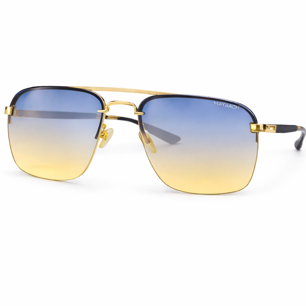 Elegant rimless sunglasses featuring a stylish blue-to-gold gradient lens and premium metal frame. Designed for a modern luxury look while providing comfortable all-day wear and UV protection.