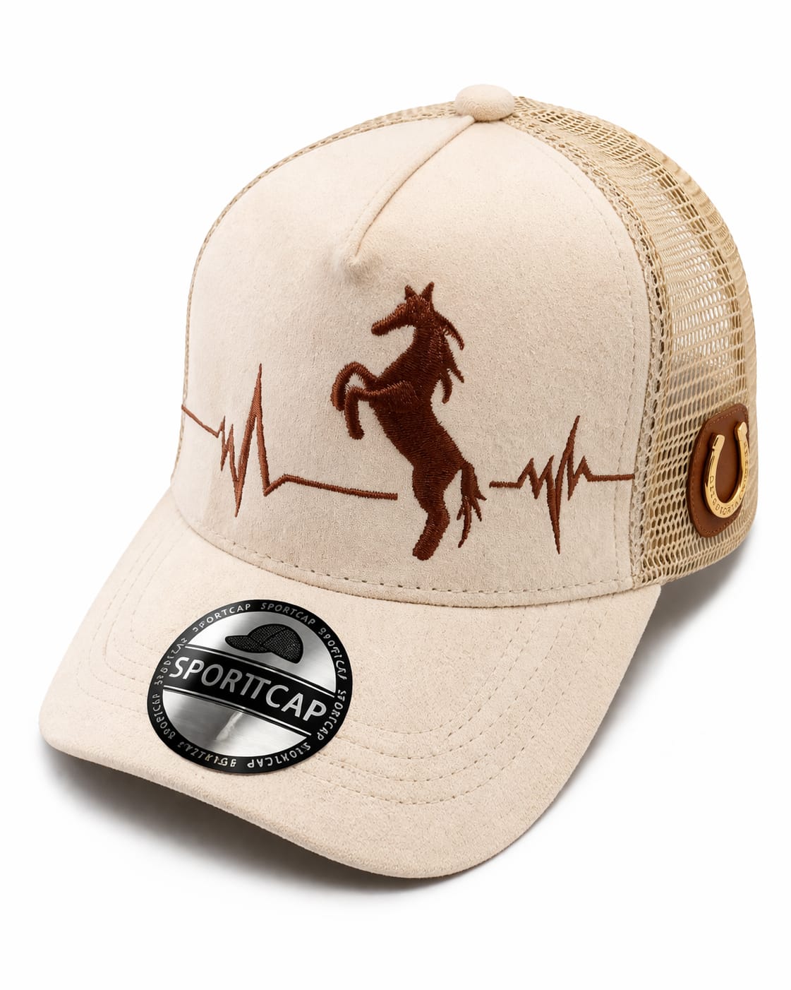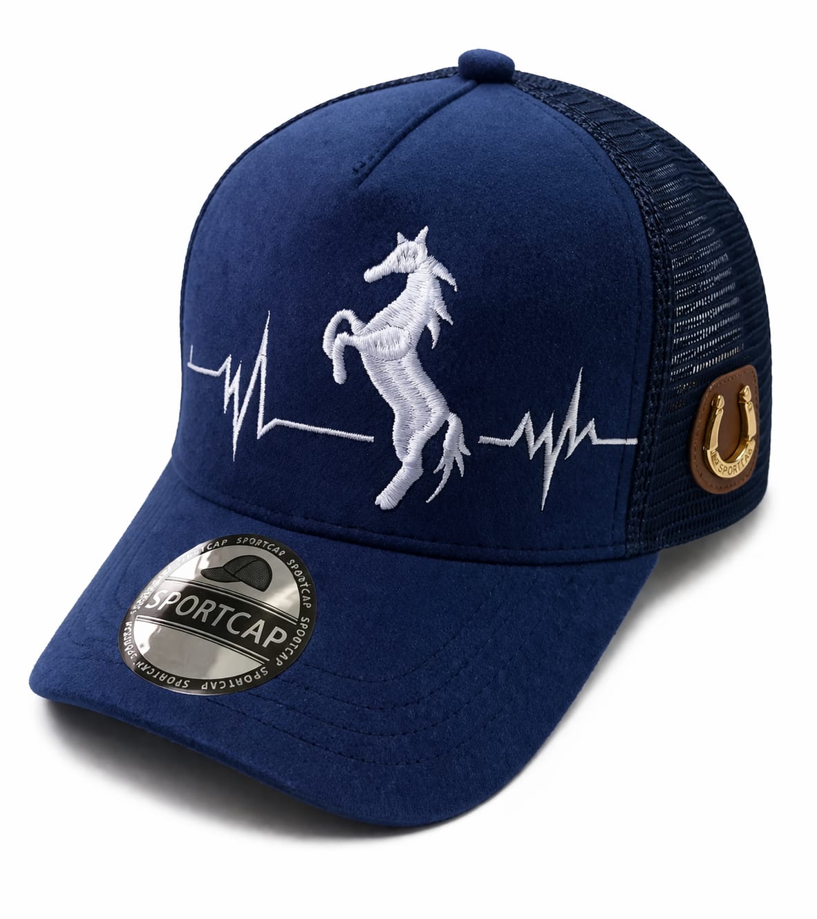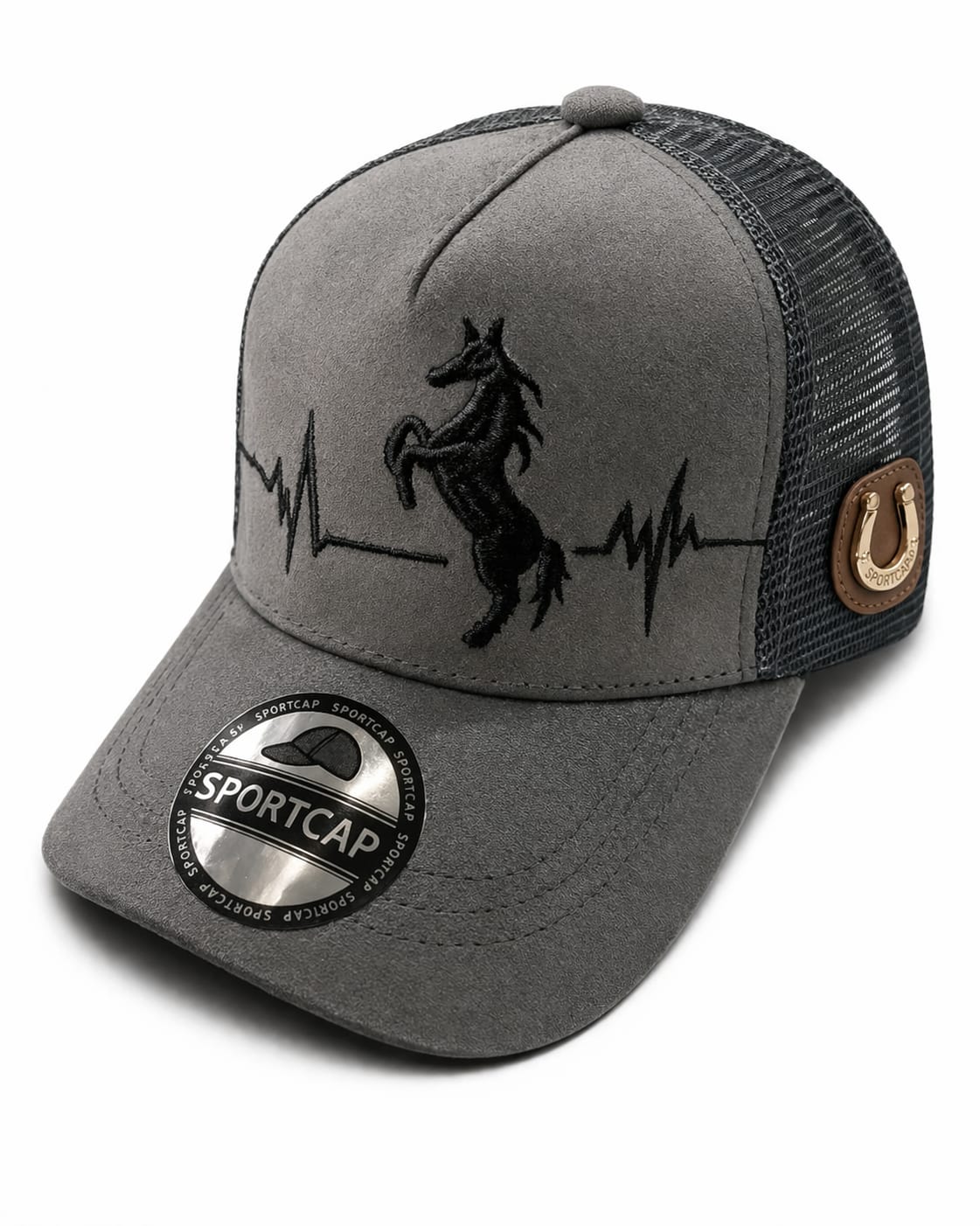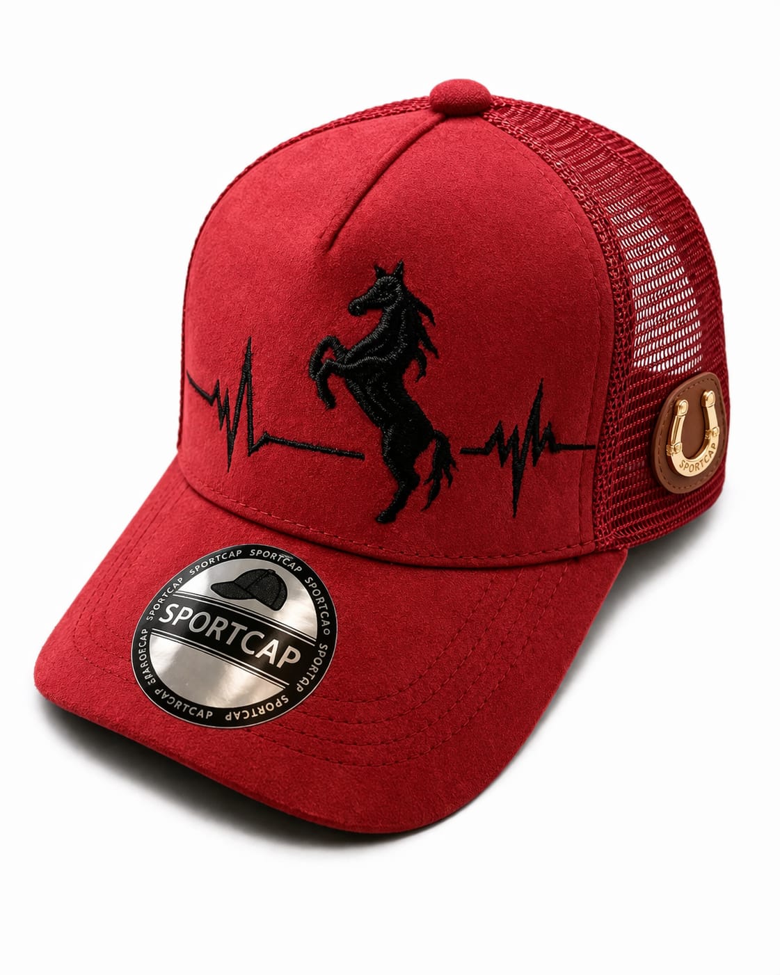 Add a bold and stylish touch to your everyday look with this premium horse heartbeat trucker cap. Designed with a unique embroidered running horse logo and heartbeat line pattern on the front, this cap gives a sporty yet premium fashion vibe.