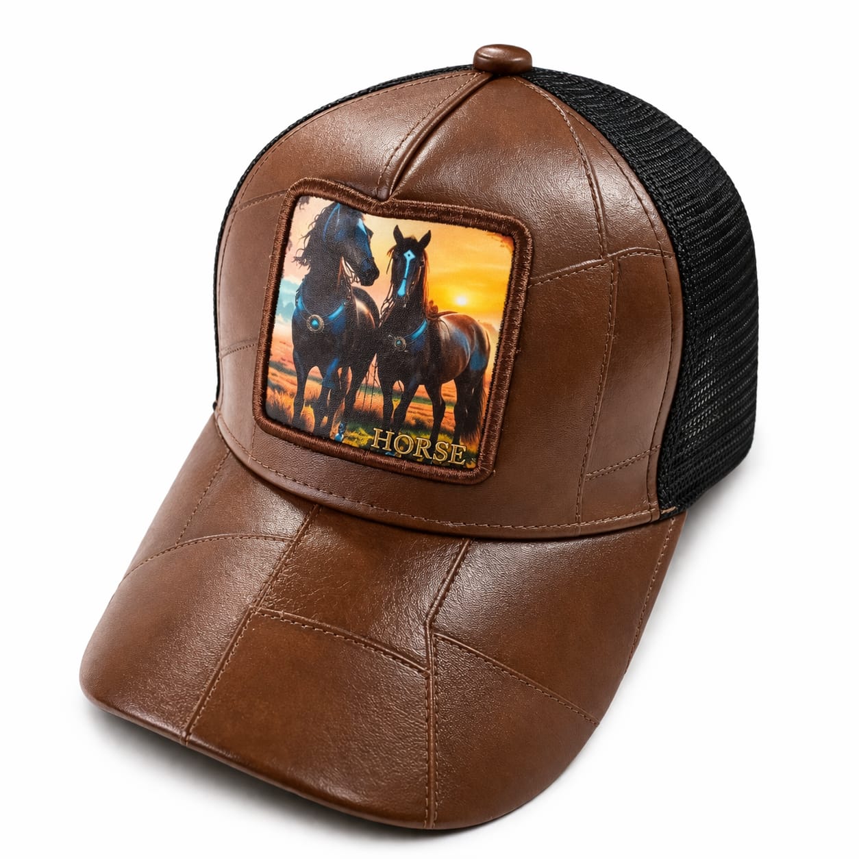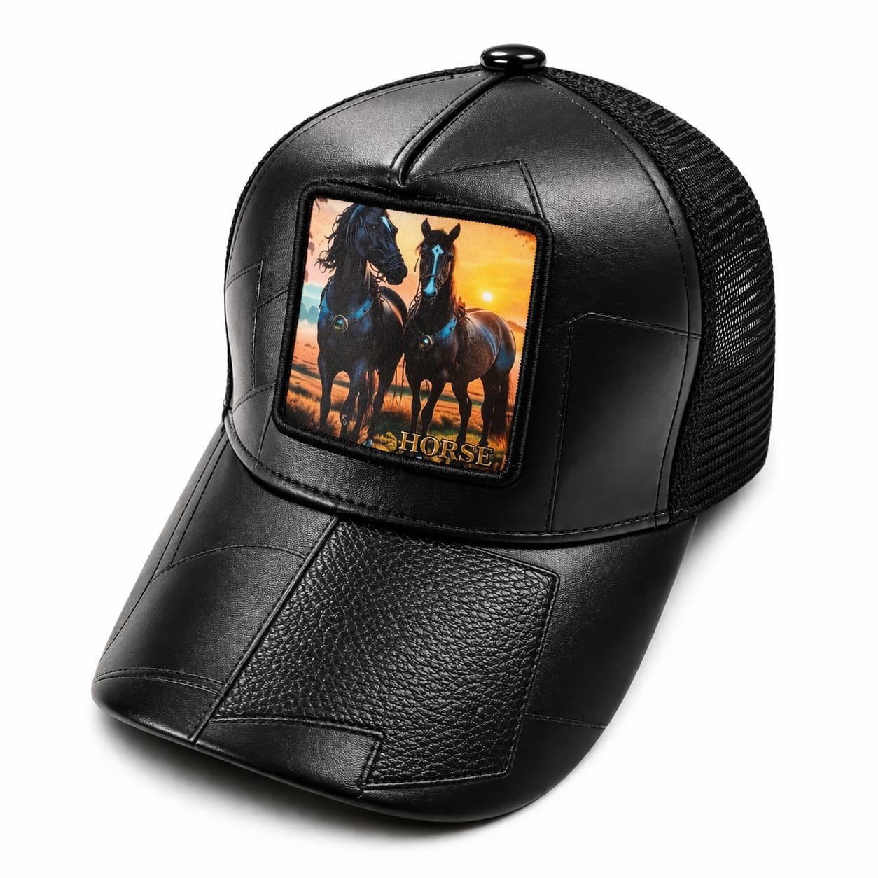 Premium Horse Patch Leather Style Trucker Cap – Adjustable Fashion Cap