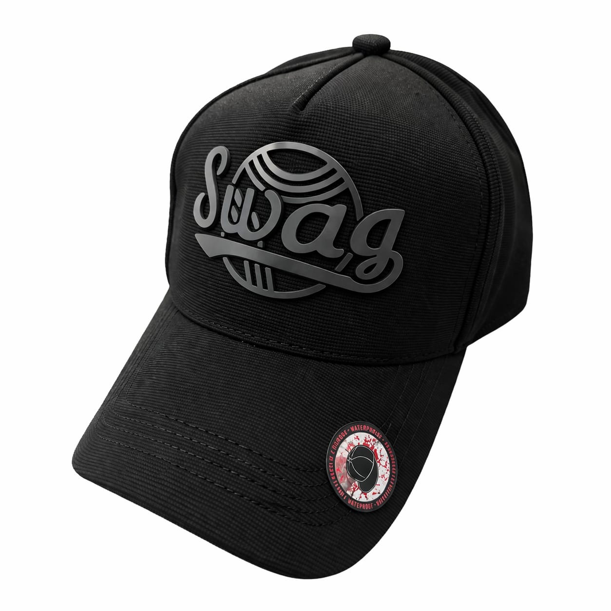 Bold black cap featuring stylish “Swag” front branding for modern streetwear looks.