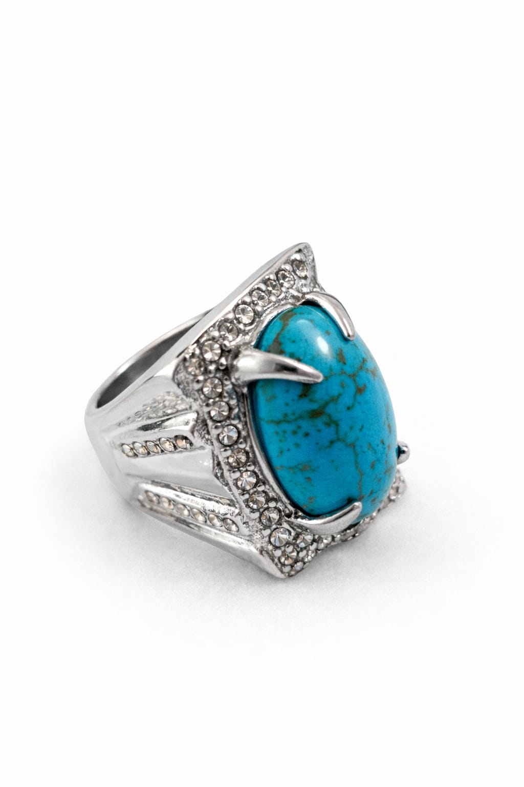 This ring features a beautiful turquoise blue oval stone with crystal border work and polished silver-tone finish. Gives a premium traditional and modern mixed look.