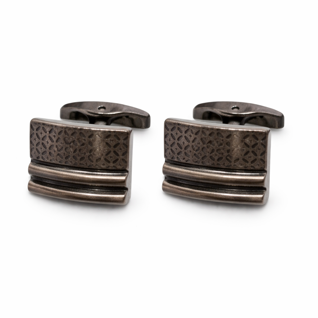 Stylish vintage-inspired cufflinks featuring a detailed textured metal design. Crafted for durability and elegance, perfect for formal wear, weddings, and business occasions.